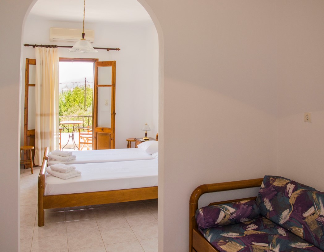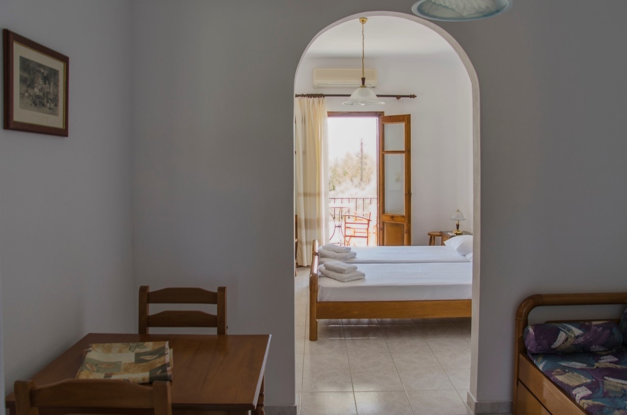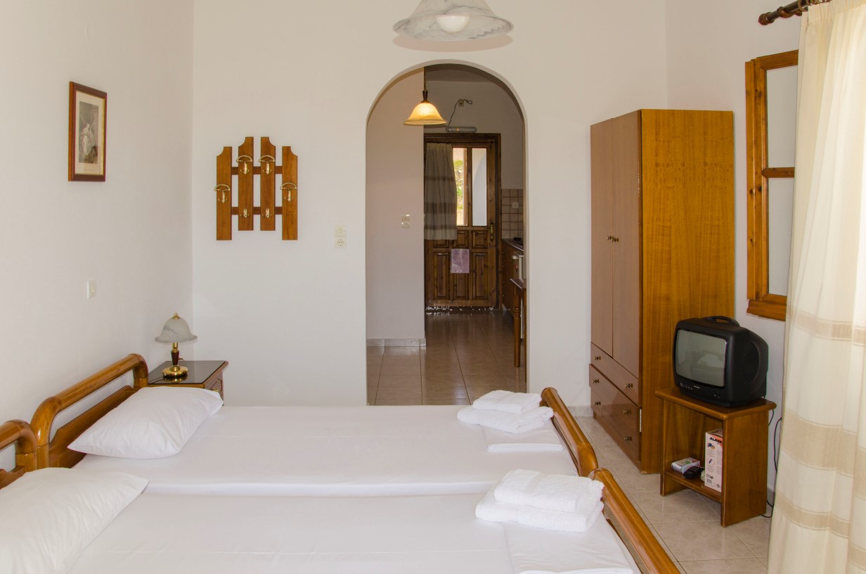 Two rooms 40m2 in total, that can accommodate up to four (4) people with the option of 3 or 4 single beds.